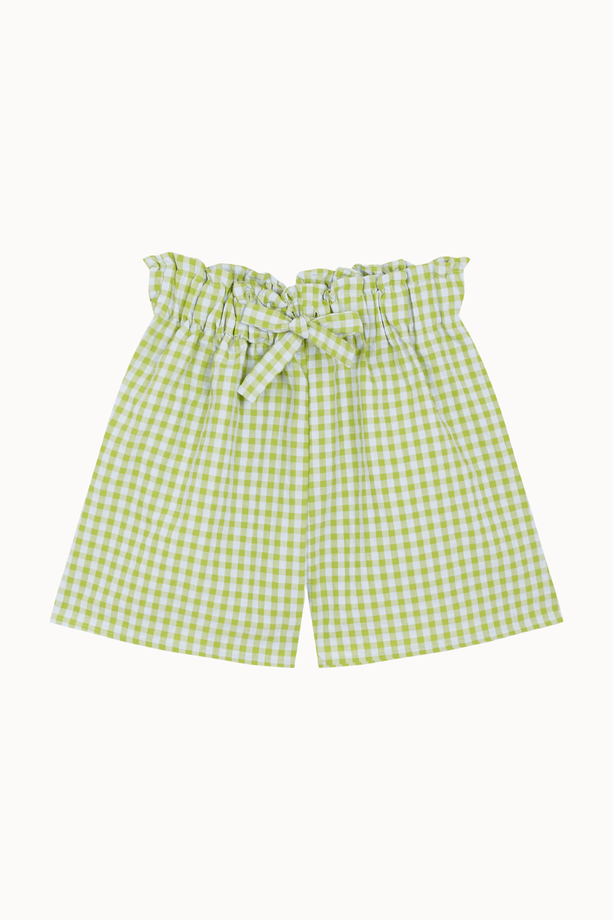 Pantalón Corto Ajustable a Cuadros Vichy Wasabi y Azul Pastel